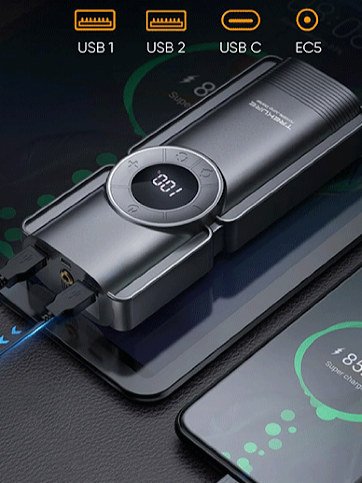 همچنین، این جامپ استارتر از طریق درگاه Type-C به سرعت شارژ میشود و امکان استفاده به عنوان پاوربانک برای شارژ دستگاههای الکترونیکی مانند موبایل و تبلت را نیز فراهم میکند. طراحی سبک، قابل حمل و بدنه مقاوم این محصول، آن را به یک انتخاب ایدهآل برای سفرهای طولانی، طبیعتگردی و استفاده روزمره تبدیل کرده است.