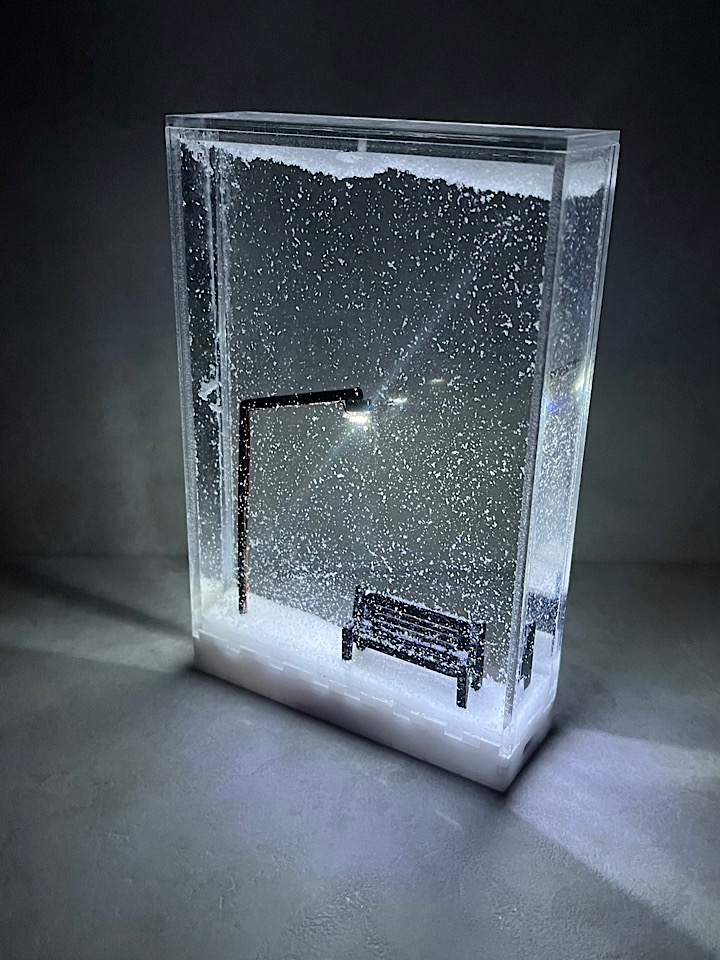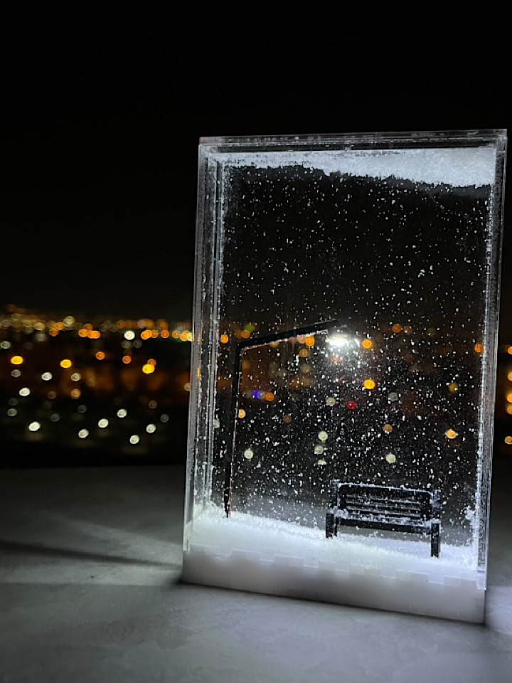 ▫️حرکت برف برفهای مصنوعی که به آرامی درون چراغ حرکت میکنند