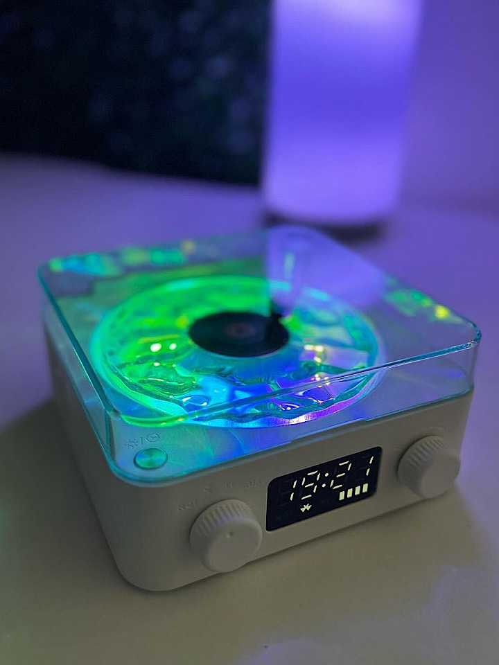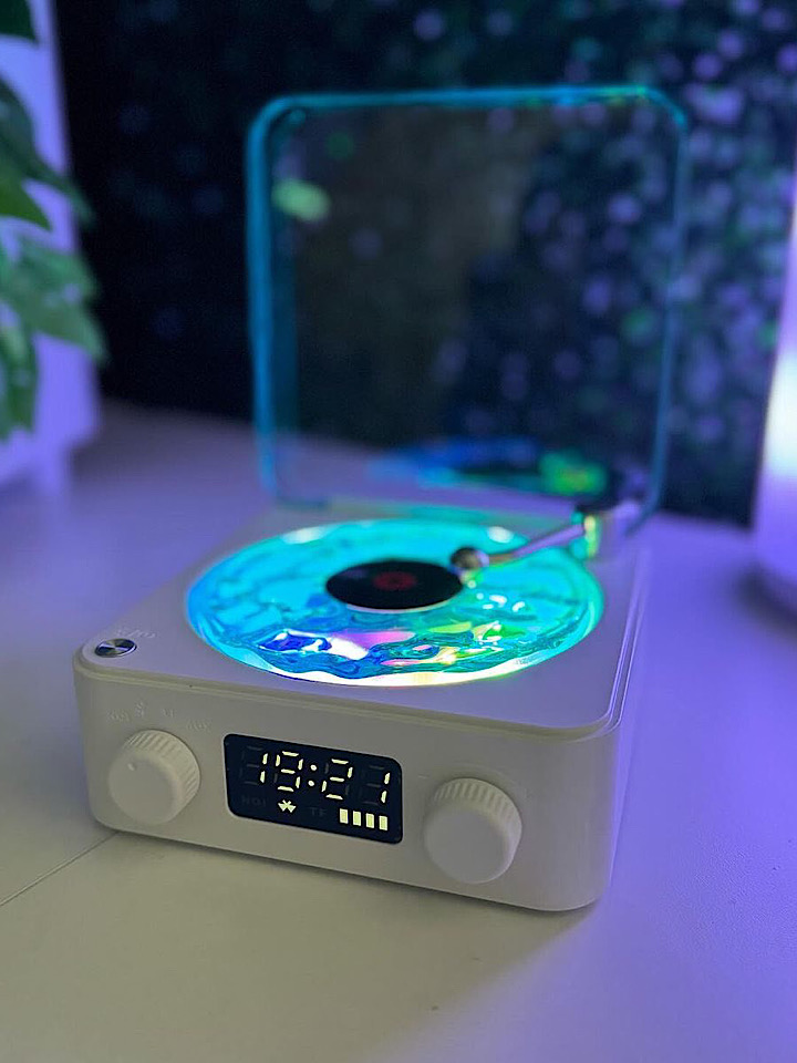 این محصول جذاب ترکیبی از گرامافون های قدیمی با اسپیکر های بلوتوثی امروزی هستش،و یک دکوری مینیمال و چراغخواب رویای که امواج اقیانوس رو شبیه سازی میکنه